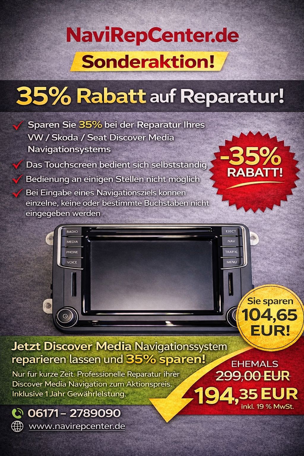 VW/Skoda/Seat: Discover Media TechniSat) MIB STD2 PQ Navigationssystem Touchscreen funktioniert nicht richtig